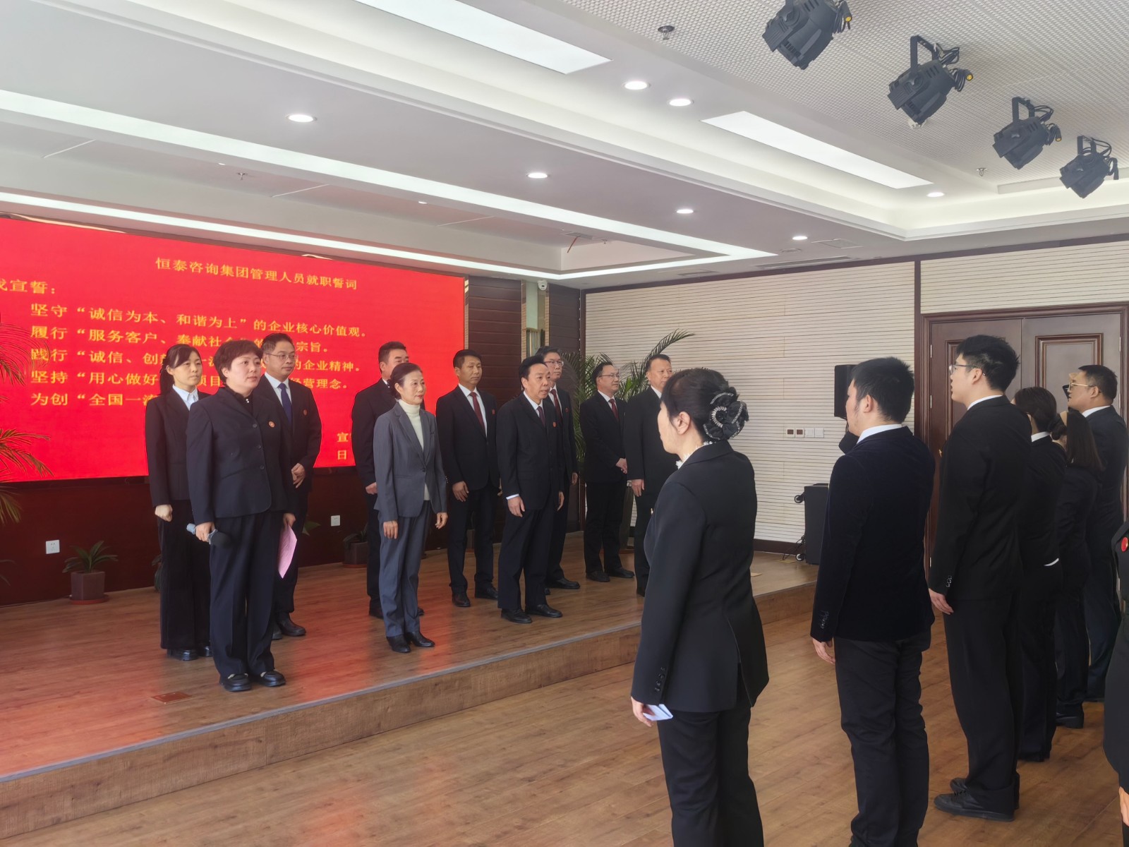 仪式伊始,全体管理人员齐唱国歌。随后,在庄严的宣誓中,大家进一步明确了自身权责,凝聚了共同价值追求,激发了团队内生动力,增强了组织的凝聚力与向心力。本次仪式的成功举办,不仅为管理人员上了深刻的履职“第一课”,也为全体员工树立了清晰的行为标杆与精神示范。恒泰咨询集团全体同仁将继续同心协力、砥砺奋进,共同为实现“创全国一流企业”的愿景而努力奋斗!
